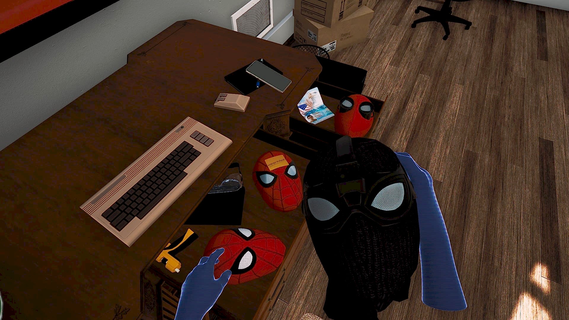 Надев шлем и подключившись к игре, вы оказываетесь в комнате Астаны Паркера. Осматриваясь, вы видите множество вещей, записок, мелких предметов и настенный монитор, на который выведены опции, в том числе игровые режимы: Comfortable, Immersive, User. Выбрав подходящий и надев маску Человека-паука, вы Pin-Up навстречу приключениям.
